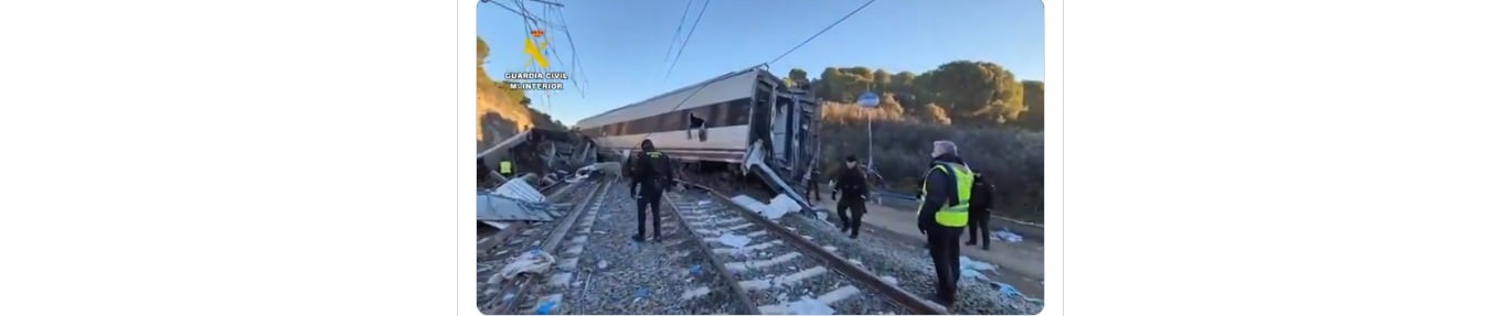 Duminică, în jurul orei 19:40, un tren Iryo de mare viteză al companiei italiene Trenitalia a deraiat, probabil rulând cu aproximativ 300 km/h, în apropierea localității Adamuz din provincia Córdoba și a ajuns pe linia alăturată, a anunțat compania feroviară Renfe. În acel moment, pe linia respectivă circula un tren de mare viteză al Renfe din sens opus, care a fost scos de pe șine în urma impactului.