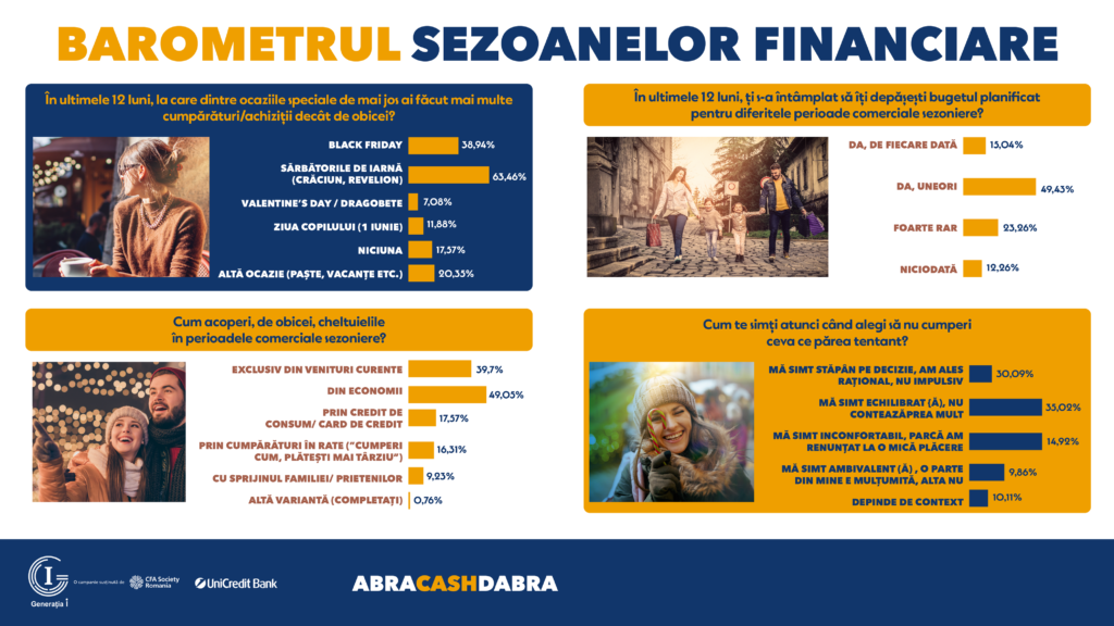 Asociația CFA România, cu sprijinul UniCredit Bank, lansează „Barometrul Sezoanelor Financiare”, un sondaj iVox Research derulat în perioada 3-6 noiembrie 2025, cu preponderență în mediul urban, dedicat modului în care românii cheltuiesc, economisesc, investesc și se protejează financiar în perioadele de consum ridicat ale anului.